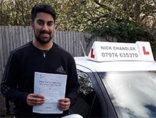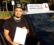 Thanks a lot Nick for your patience and helping me to pass the driving test. I wouldn't have been able to do it without you. I would highly recommend you to all my friends and anyone wanting to learn to drive.